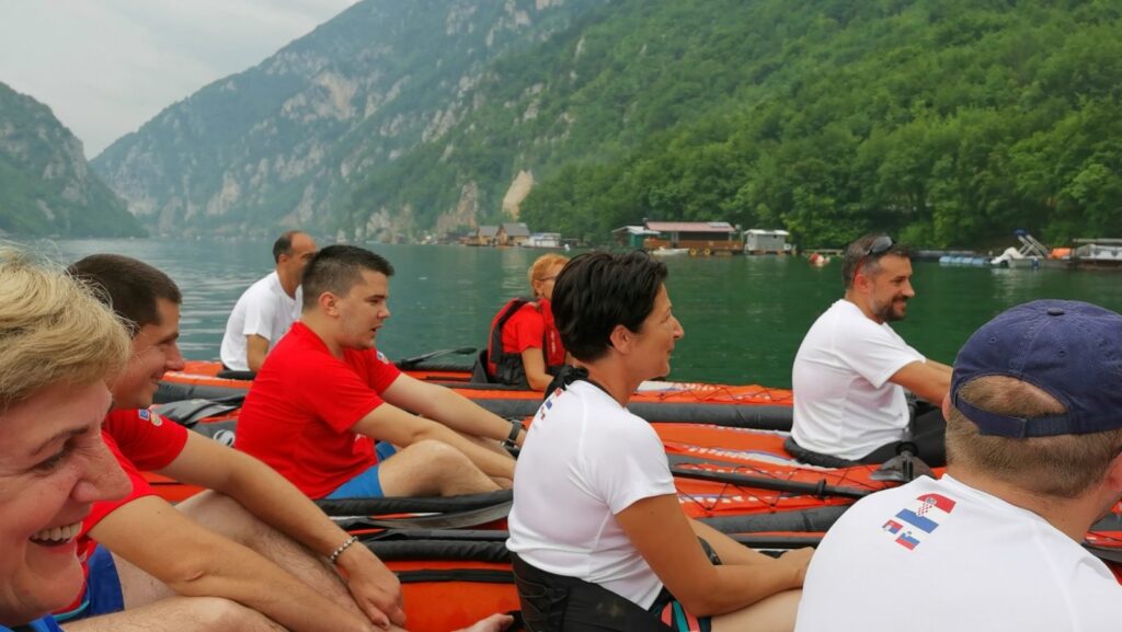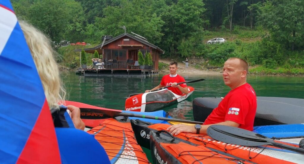Nakon ručka, kraćeg odmora i prestanka letnjeg pljuska učesnici su se sastali sa članovima lokalnog Kajak kluba Drina. Kajaci koji su nabavljeni kroz GLOR projekat su porinuti u Perućačko jezero, a nakon par pozdravnih reči Milutina Lukića, predsednika KK Drina, instrukcije za pravilnu upotrebu plovila i sinhronizovano veslanje dao je Marko Marjanović, reprezentativac Srbije u Kajaku na divljim vodama. Simbolično, učesnici su pomešani na plovilima tako da ni na jednom plovilu nisu bili predstavnici iz iste balkanske države. Održano je i malo takmičenje na kom je pobedila hrvatsko-srpska kombinacija veslača.